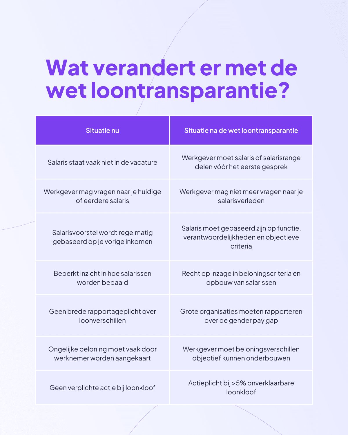 In Nederland gaan deze regels naar verwachting in per 1 januari 2027, als uitwerking van de Europese richtlijn EU 2023/970 die in juni 2026 van kracht wordt.